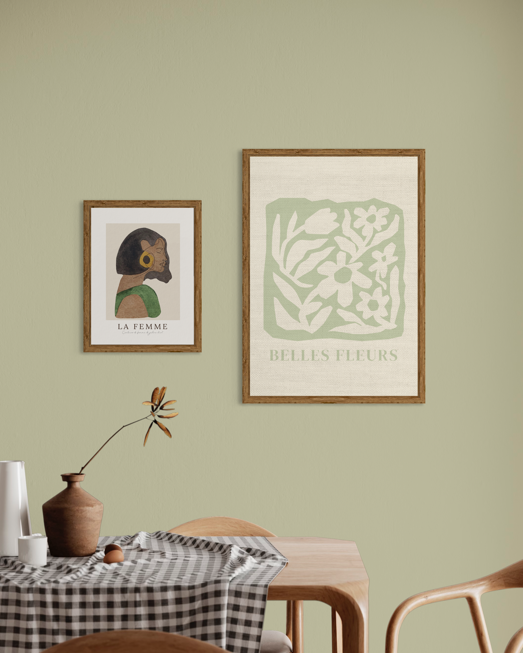 Botanical and minimalist linen texture poster in green and beige colors with text. Give your wall a neutral and botanical look with this poster!